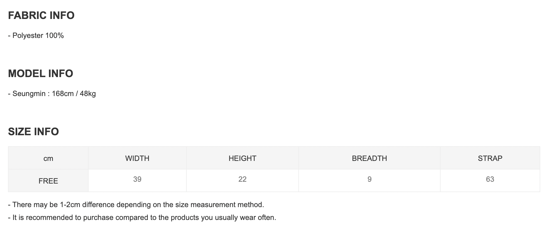 SIZE / 詳細尺寸可參考下圖 (尺寸由官方提供,有可能有偏差)