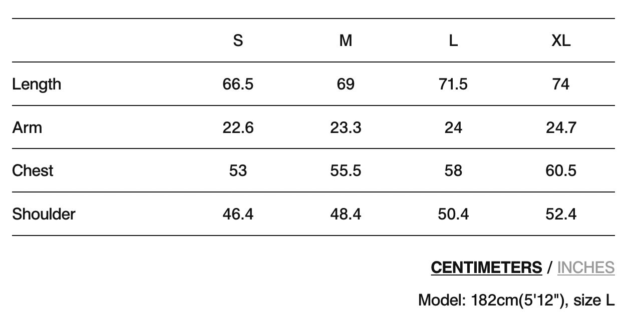 SIZE /  (尺寸由官方提供,有可能有偏差)